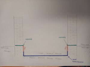 Patrząc na Pana załączony przekrój z wysokościami izolacji, podłóg i ścian, z zaznaczonymi na czerwono miejscami pionowymi, które (zgodnie z moim zaleceniem) staną się częścią wanny hydroizolacyjnej – biorąc pod uwagę oddziaływanie wilgoci gruntowej z podłoża – nie pozostaną żadne miejsca ani wysokości, przez które wilgoć mogłaby przenikać do tak zaizolowanego przejazdu.