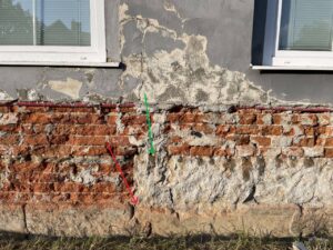 Dzień dobry, samodzielnie przeprowadzam renowację naszego domu za pomocą Państwa preparatu AquaStop Cream. Nawierciłem otwory i wypełniłem je kremem zgodnie z instrukcją. Wysokość otworów nad poziomem wewnętrznej podłogi wynosi do 10 cm. W załączniku przesyłam zdjęcie obiektu, na którym zieloną strzałką zaznaczyłem już wykonaną iniekcję. Bloki piaskowca na dole tworzą „pewnego rodzaju” fundament domu, znajdują się poniżej poziomu terenu i zostaną zasypane kamieniem wraz z rurą drenażową. Moje pytanie jest następujące: ponieważ chciałbym podjąć maksymalne środki przeciwko wilgoci podciąganej kapilarnie do muru, czy ma sens wykonanie iniekcji na jeszcze jednym poziomie, jak zaznaczyłem na zdjęciu czerwoną strzałką? Wiem, że jestem już poniżej poziomu wewnętrznej podłogi. Czy może ma sens po około 6 tygodniach odetkanie otworów i uzupełnienie kremu?