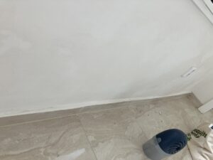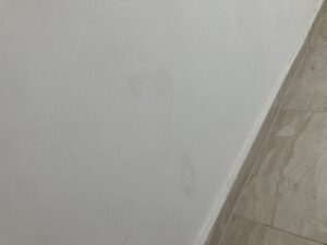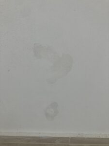 Możliwe jest również, że w dolnej części ścian położono tynki renowacyjne, które w dobrej wierze miały rozwiązać problem wilgoci. Jednak przy wysokim poziomie wilgotności zawartej wewnątrz muru, po krótkim czasie wilgoć ta pojawia się nawet na tynkach paroprzepuszczalnych. Niemniej jednak są to jedynie przypuszczenia. Konieczne jest wykonanie głębokiego pomiaru wilgotności muru. To jednoznacznie potwierdzi, czy mokre plamy na tynkach są spowodowane niefunkcjonalną lub brakującą poziomą hydroizolacją pod ścianami, czy jest to jedynie wilgoć powierzchniowa, czyli kondensacyjna.