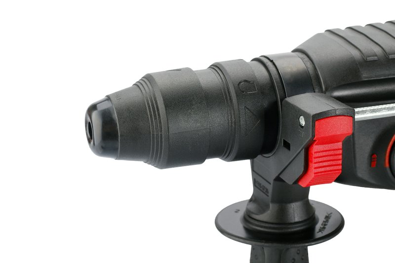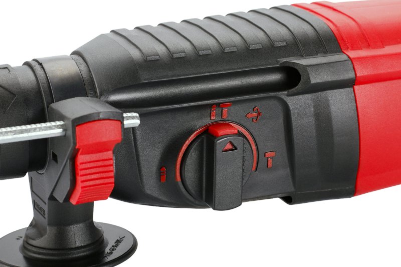 Młotowiertarka o mocy 800 W, oferująca kombinację trybów wiercenia, wiercenia z udarem oraz kucia.